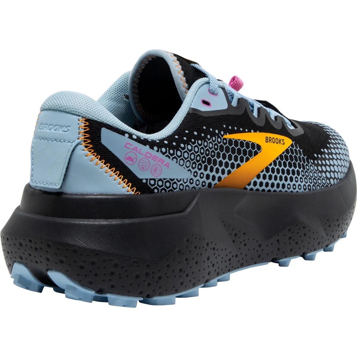 With the Caldera 6 on our feet, the trail turns to clouds. The updated midsole is now softer than ever and features raised walls and a widened platform, making our ride smooth and steady. When roots and rocks try to ruin our flow, the split-heel sole keeps our footing stable.