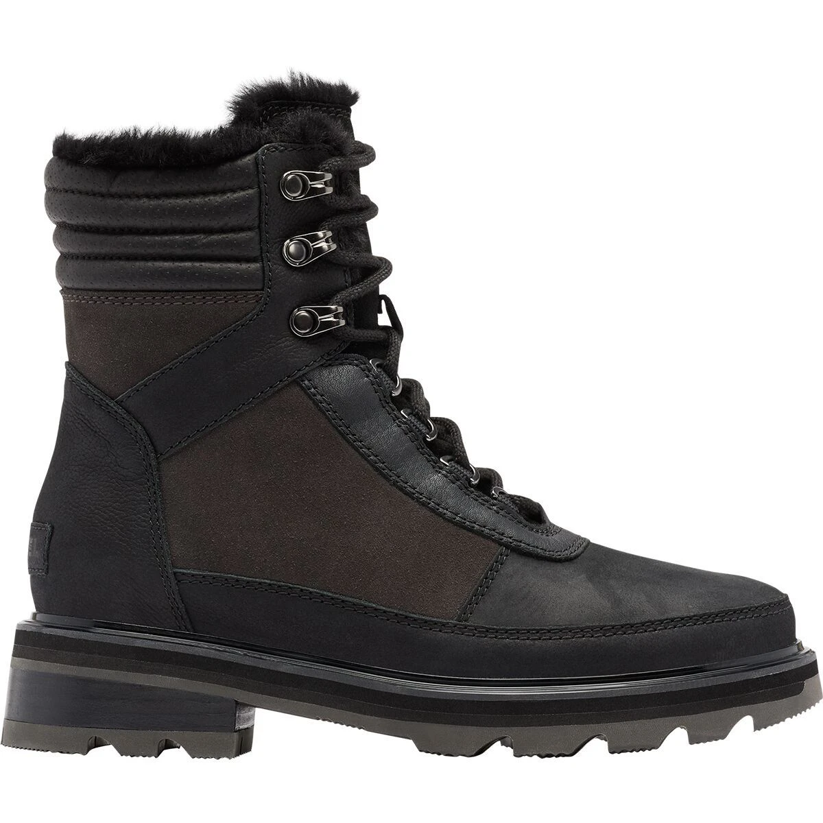- Rubber outsole grips variable winter terrain with ease
