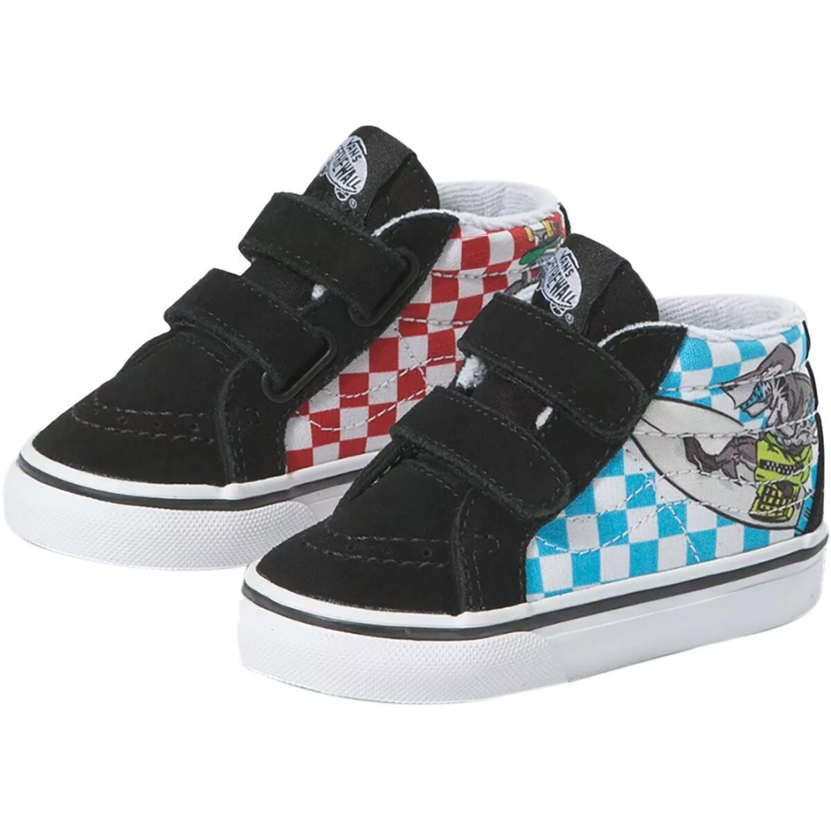 Made with sturdy suede and canvas uppers featuring our signature checkerboard print, the Color Theory Toddler Sk8-Mid Reissue V honors our reissued mid top shoe with eye-catching colorways ideal for the season. Along with double hook-and-loop closures instead of traditional laces, this timeless sidestripe style includes reinforced toe caps, supportive padded collars, and signature rubber waffle outsoles.